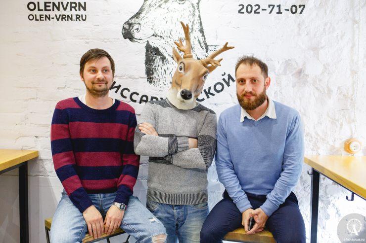 Глядя на все это, мы заинтересовались, кто автор идеи. Таковыми оказались два молодых человека, Никита и Леонид, по совместительству музыканты The Sheepray, одной из самых любимых воронежских групп редакции «Афиша+». Никита еще играет в не менее замечательной группе Happy55. Компанию нам составил и сам Олень. Только на вопросы он не отвечал, ведь олени не разговаривают.