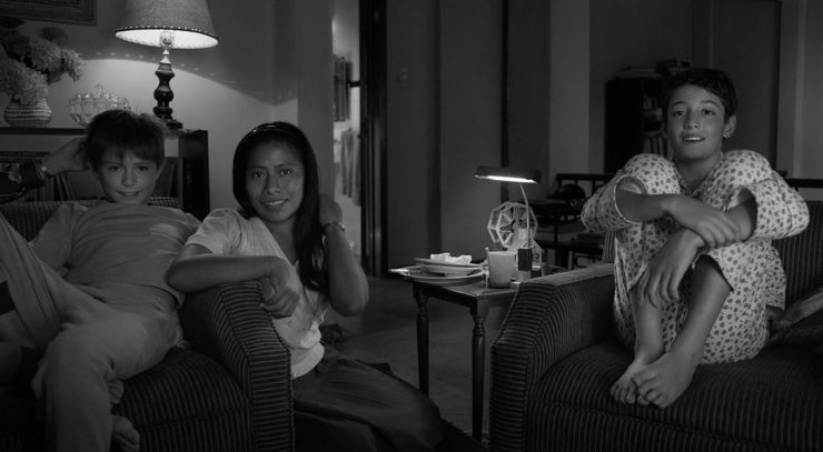 Учитывая, что уже в детстве режиссер был сумасшедшим синефилом, одна из важнейших тканей, которая, кажется, и обеспечивает жизнеспособность столь деликатному проекту, - его опыт зрителя. Одна из немногочисленных идиллических сцен, когда отец решил все-таки провести один вечер дома, происходит перед экраном телевизора. Расставание Клео с ее инфантильным парнем происходит на фоне «Большой прогулки» Жерара Ури - комедии с Луи де Фюнесом. В одной из сцен на экран кинотеатра проецируется фильм про космонавтов, очень похожий как раз на «Гравитацию», один из самых известных широкому зрителю фильмов Куарона. Режиссер в детстве также хотел стать космонавтом.