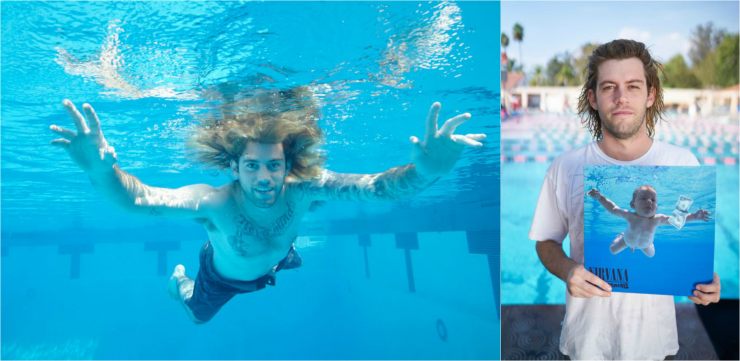 На выходных культовому альбому группы Nirvana «Nevermind» исполнилось 25 лет (почувствуйте себя стариками!). В честь этого 25-летний Спенсер Элден, тот самый младенец с обложки, решил повторить знаменитую фотосессию.