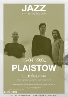 15 апреля в книжном клубе «Петровский» в рамках проекта «Jazz в „Петровском“» пройдет концерт швейцарского трио Plaistow. Музыку коллектива критики называют по-разному: чаще пост-джазом, реже современным фьюжном и академическим минимализмом. Принципиально не пользуясь в своих выступлениях электронной обработкой звука, швейцарцы тем не менее заставляют рояль, контрабас и барабаны звучать так, что их часто рассматривают как представителей электронной сцены.